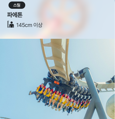 - 국내 최고 높이 83m에서 수직 낙하하는 플로어리스 다이빙코스터